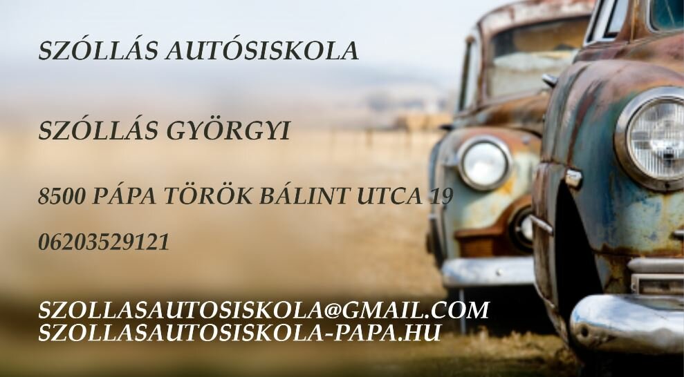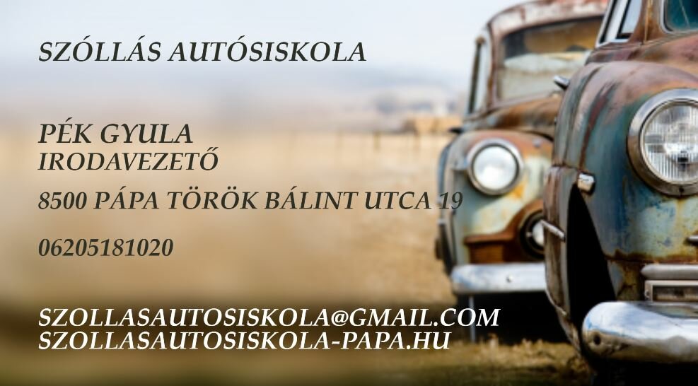 Ha bármi kérdésed volna akár gyula.pek007@gmail.com E-mail címen, akár a Facebookon a " Szóllás Autósiskola oldalán, vagy Szóllás Györgyi iskolavezető 06-20-3529121, illetve Pék Gyula irodavezető 06-20-5181020-as telefon számán lehet.